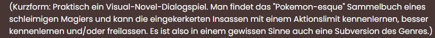 - Naheliegend: Genres & Themen. Ich habe bspw. ins Visual-Novel-Subreddit gepostet, obwohl man sich streiten kann, ob mein Spiel WIRKLICH so genau in diese Kategorie fällt. Der Reiz ist aber ein ähnlicher, also sehe ich es keinesfalls als Irreführung. Selbiges gilt natürlich für das Monstergirl-Subreddit …!