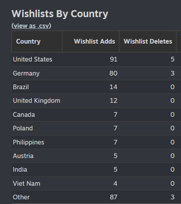 - Mir ging es es allerdings weniger darum, ganz direkt Gewinn zu generieren, sondern mehr um die Gesamtzahl der Wishlistings, die der Steam-Algorithmus ziemlich wichtig findet, bevor er das Spiel weiteren Leuten zeigt. Insofern ist der direkte Gewinn nicht die zentrale Variable hier.